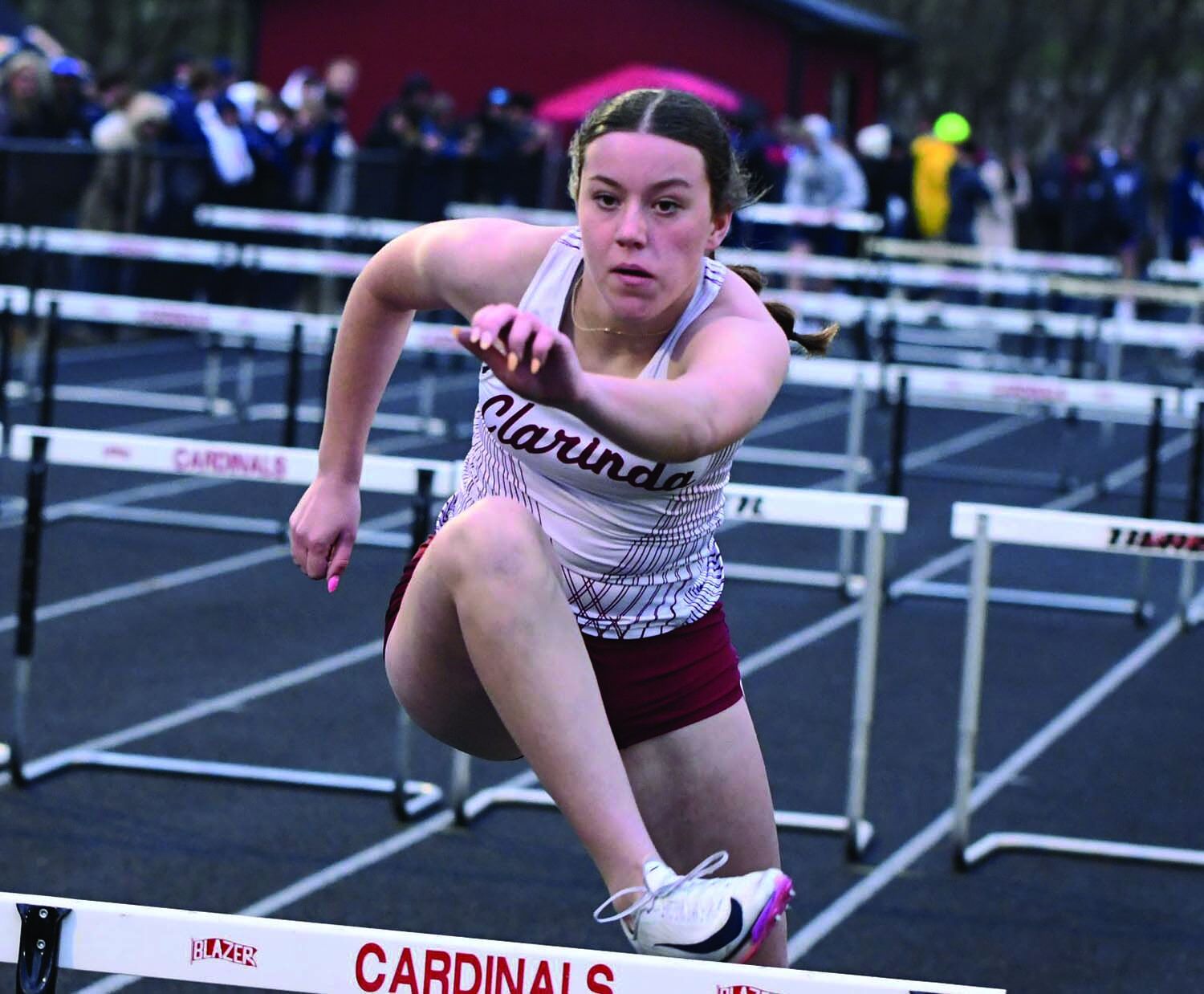 Clarinda freshman Rylee Maher competes in the 100-meter hurdles