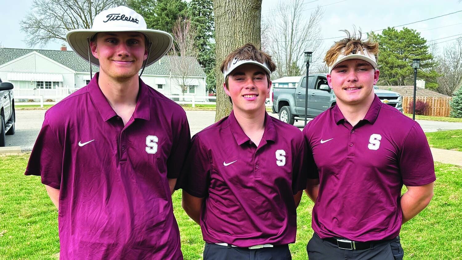 The Shenandoah baseball team gathers for a picture with their three seated seniors, from left: Tyler Babe, Teagan Brunk and Logan Twyman, who signed Thursday, April 2, during Shenandoah's Signing Day to play college baseball.