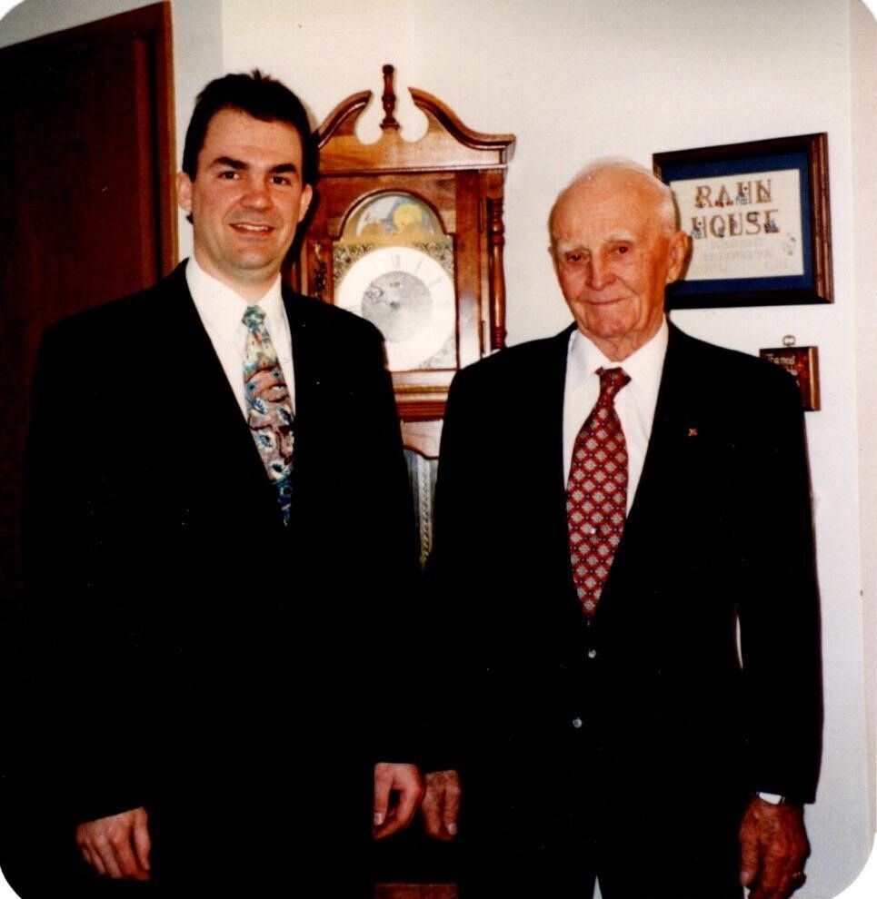 Tim Yerkey is shown with his grandfather, Clifford Rahn, who farmed the family land starting in the 1940s.