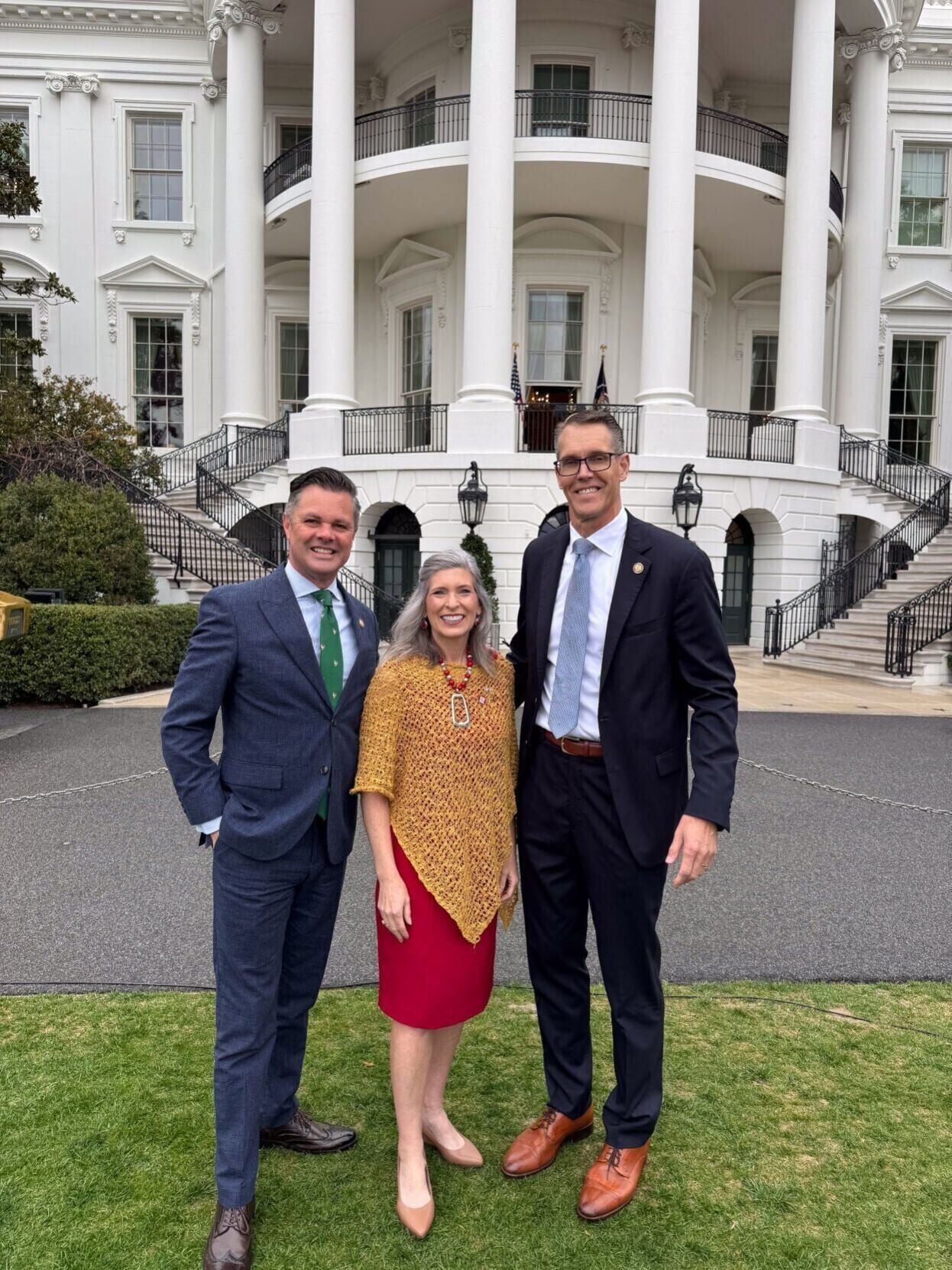 U.S. Sen. Joni Ernst, R-Iowa, poses with Iowa Republican U.S. Reps. Zach Nunn (left) and Randy Feenstra in front of the White House during National Ag Week celebrations honoring the nation’s agricultural producers on Friday, March 27, 2026.