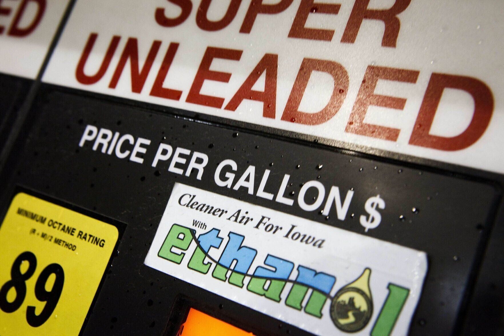 Super unleaded gasoline is advertised to support “Cleaner Air for Iowa with Ethanol” on a Kum and Go gas pump in December 2011 in Ottumwa.