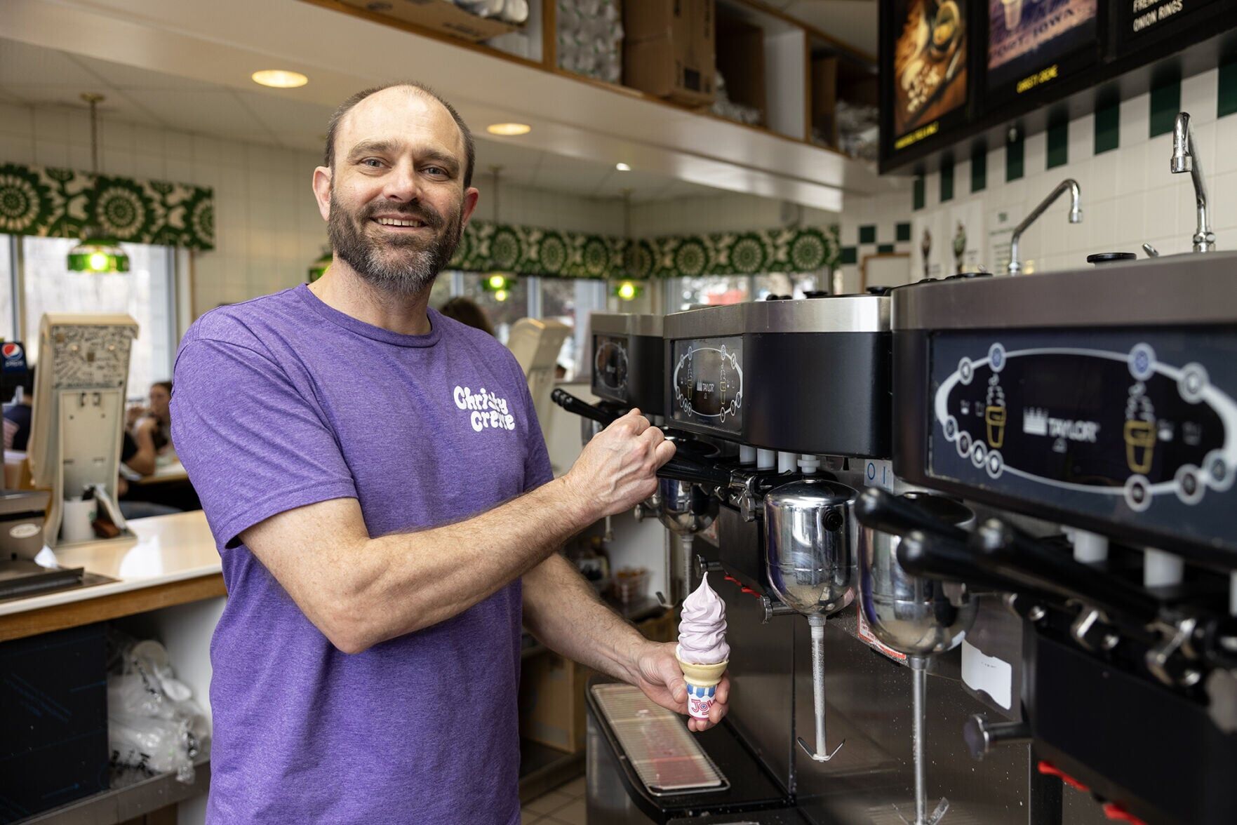 Christy Creme owner Matthew Preston poses for a portrait inside the long-running ice cream and burger joint, 2853 N. Broadway, on Saturday, March 21, 2026. Christy Creme opened for its 72nd season of operation on Feb. 13.